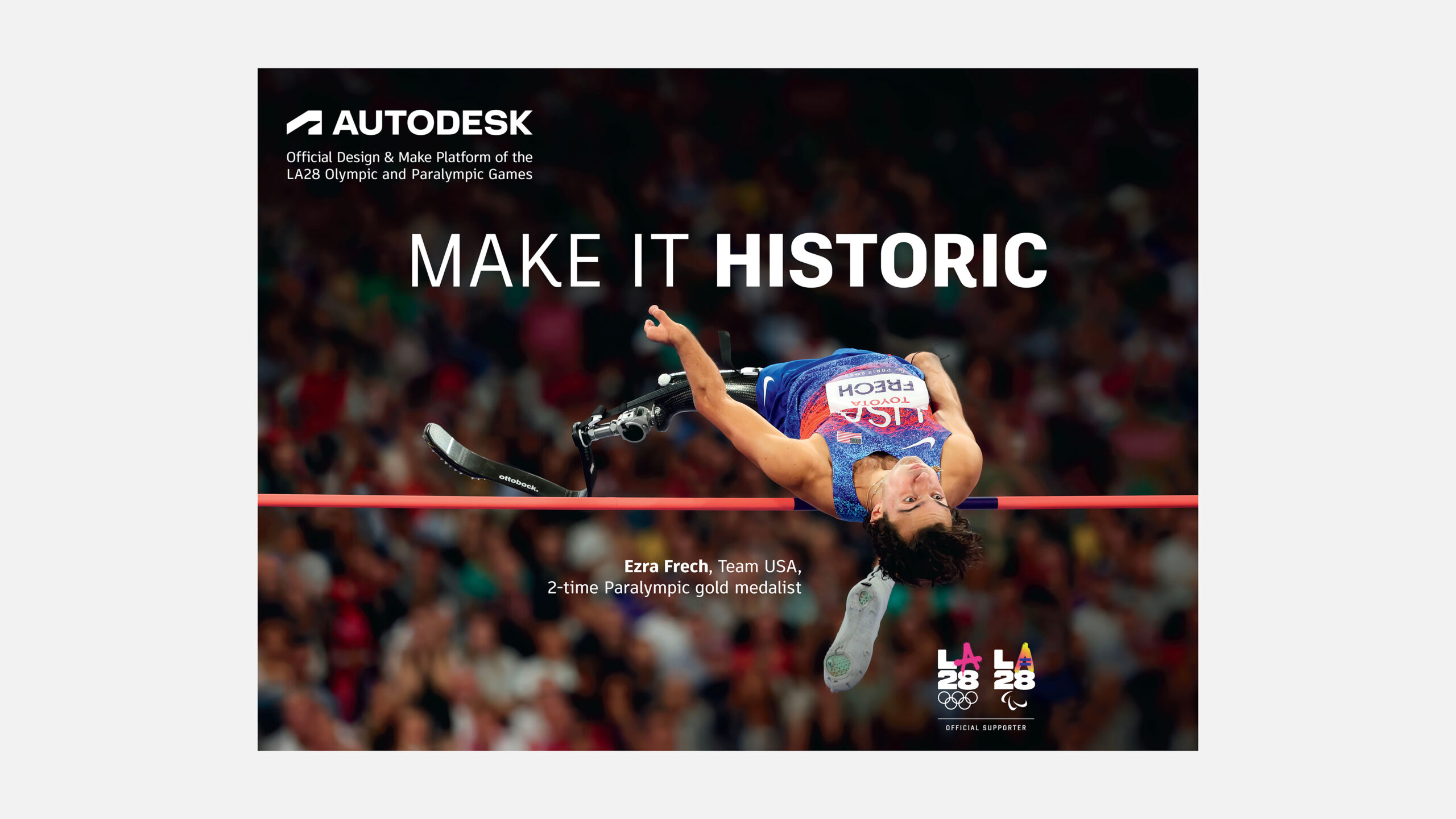 Autodesk is the official design-and-make platform for LA28. We helped them make the big announcement with a campaign that showed how buildings, skate parks, arenas, and even prosthetics all start with Autodesk software.